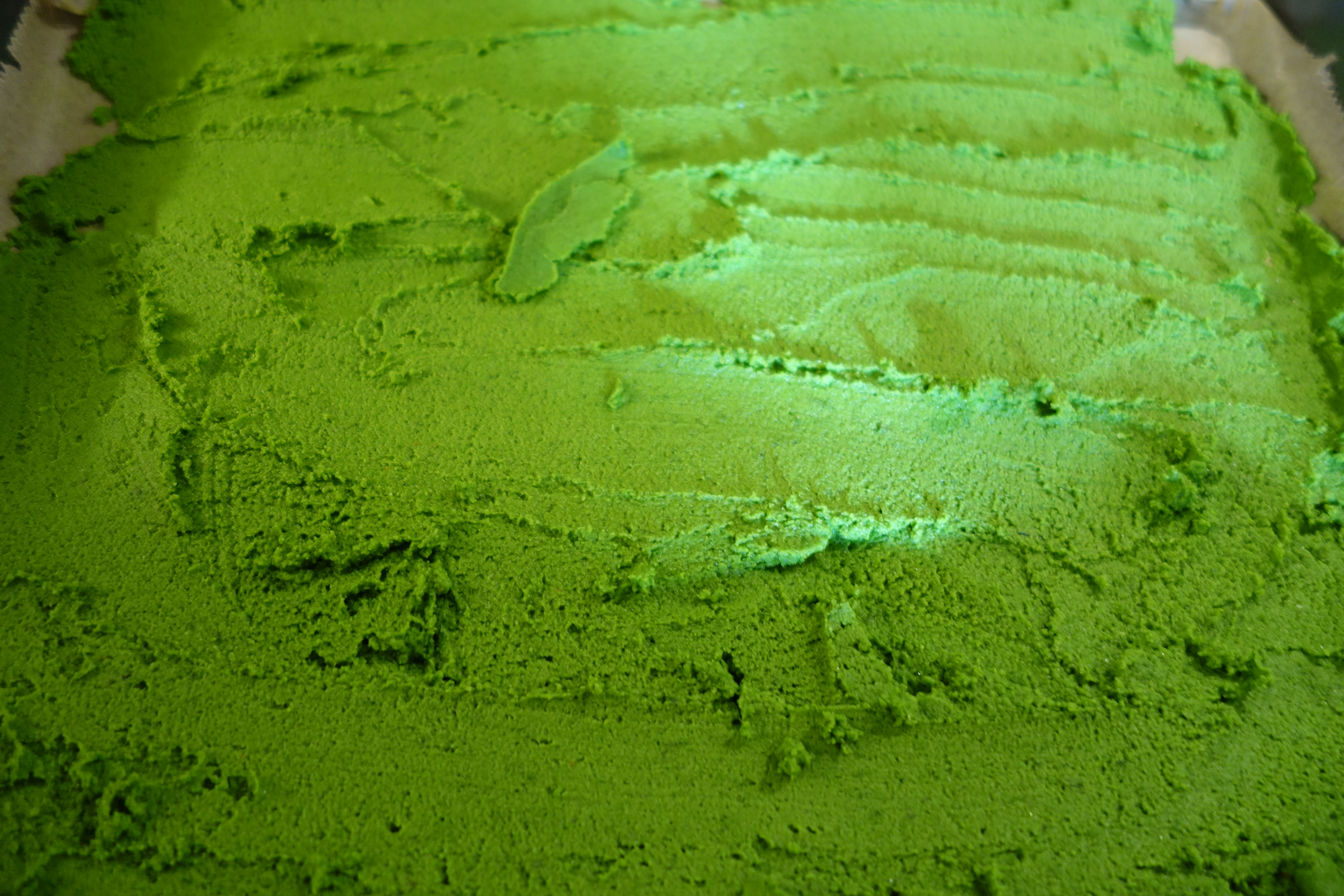 Dann das ganze auf einem Dörrblech ausstreichen. Je dicker du das machst, desto länger dauert die Trockenzeit.