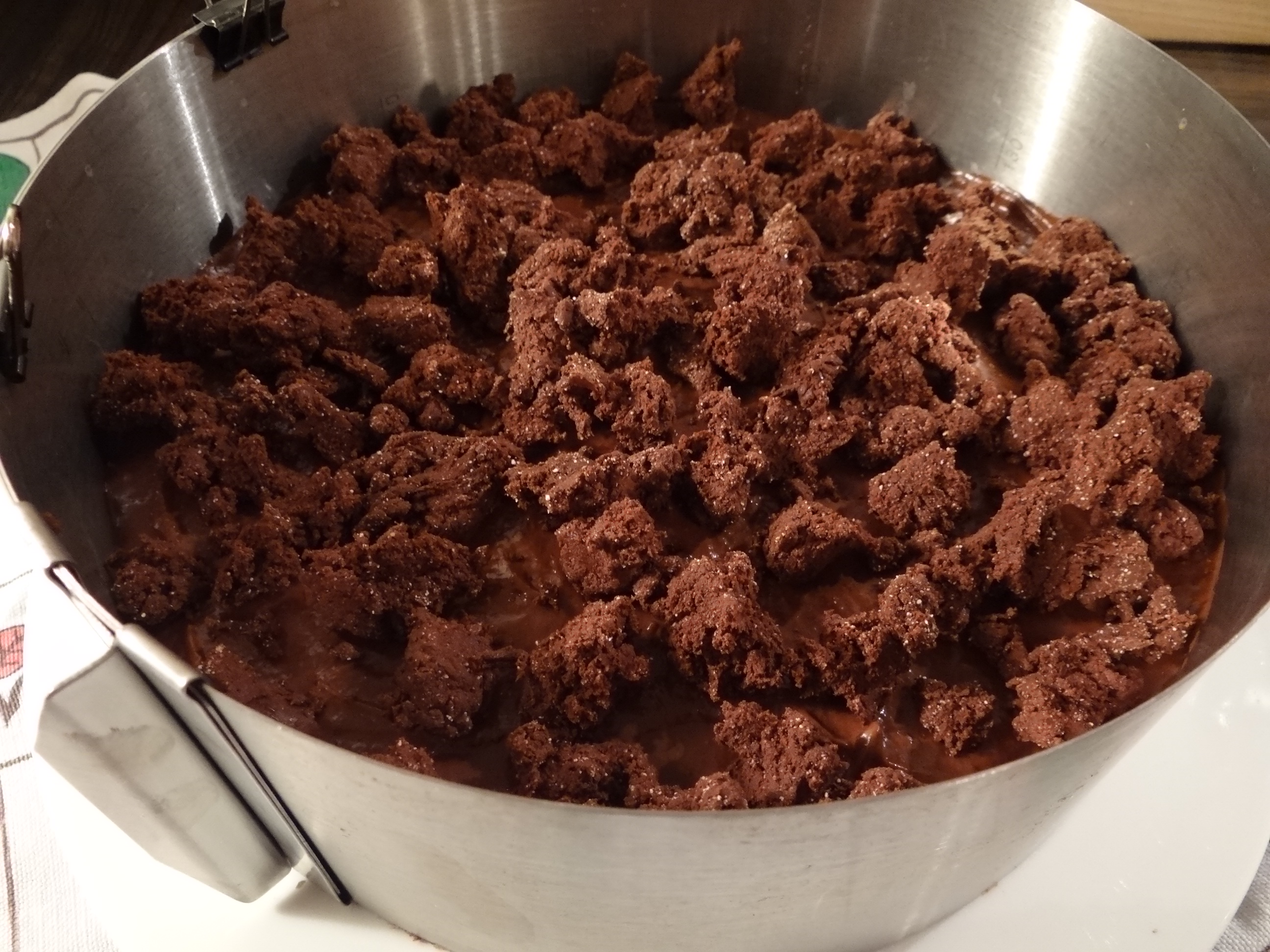 Eben erstmalig die Torte fabriziert – das Aussehen entspricht schon mal ganz den Fotos 😉 , und getestet, gekostet wird heute nachmittag.