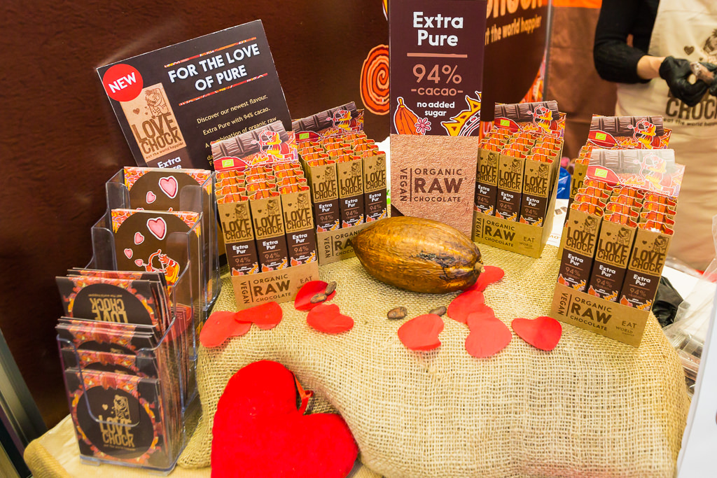 Mein Lieblingsstand auf solchen Messen ist natürlich immer der Stand, wo es Rohkostschokolade gibt! So war auch dieses mal wieder Love Chock vertreten mit jeder Menge neuer Sorten. Natürlich konnte man auch die alle testen.