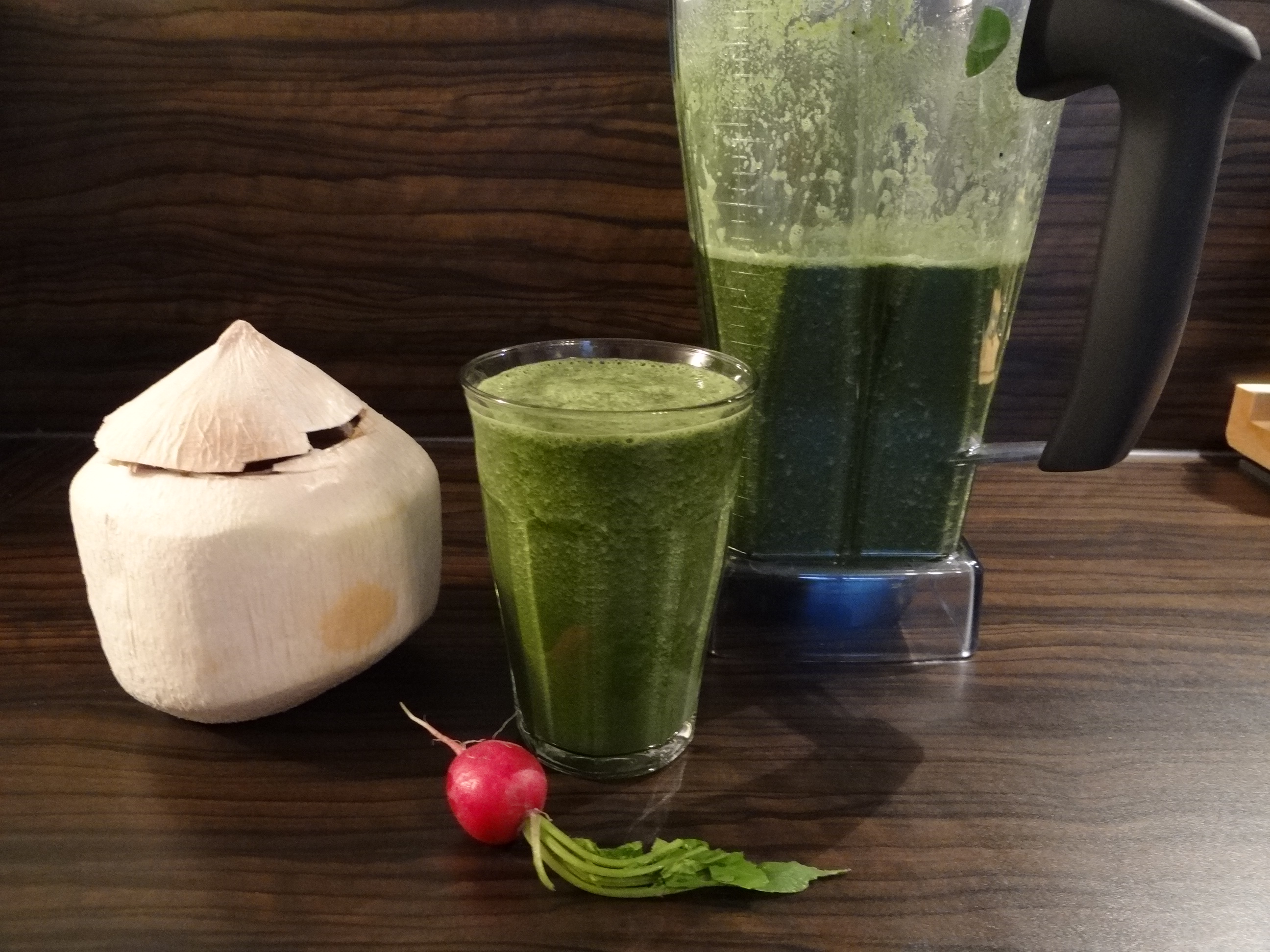 Die meisten verwenden bei den Radieschen nur die kleine rote Knolle und werfen das Grün weg. Schade eigentlich, denn die meisten Inhaltsstoffe sind nicht etwa in der Knolle sondern im Grünen enthalten! Und hier ist ein Rezept für einen leckeren Smoothie, der lange satt hält und wo du das Grün deiner Radieschen verwenden kannst 🙂
