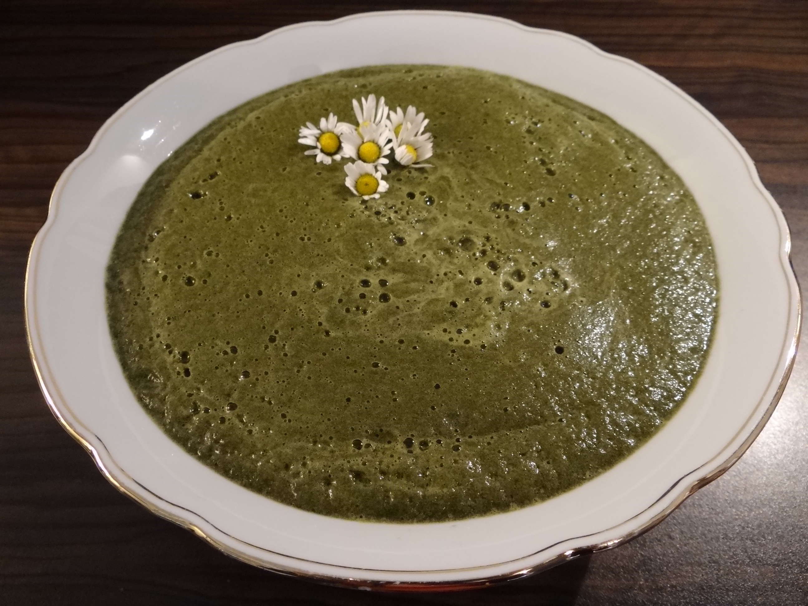 Gib alle Wildkräuter mit dem Wasser in den Mixer und mixe alles kräftig durch. Da ich morgens meinen Smoothie löffle, gebe ich nur wenig Wasser hinzu. Er ist dann zwar sämig aber wie eine dicke Suppe und kann gut mit dem Löffel gegessen werden. Wenn du gerne einen Smoothie zum Trinken haben möchtest, dann gib einfach mehr Wasser hinzu.